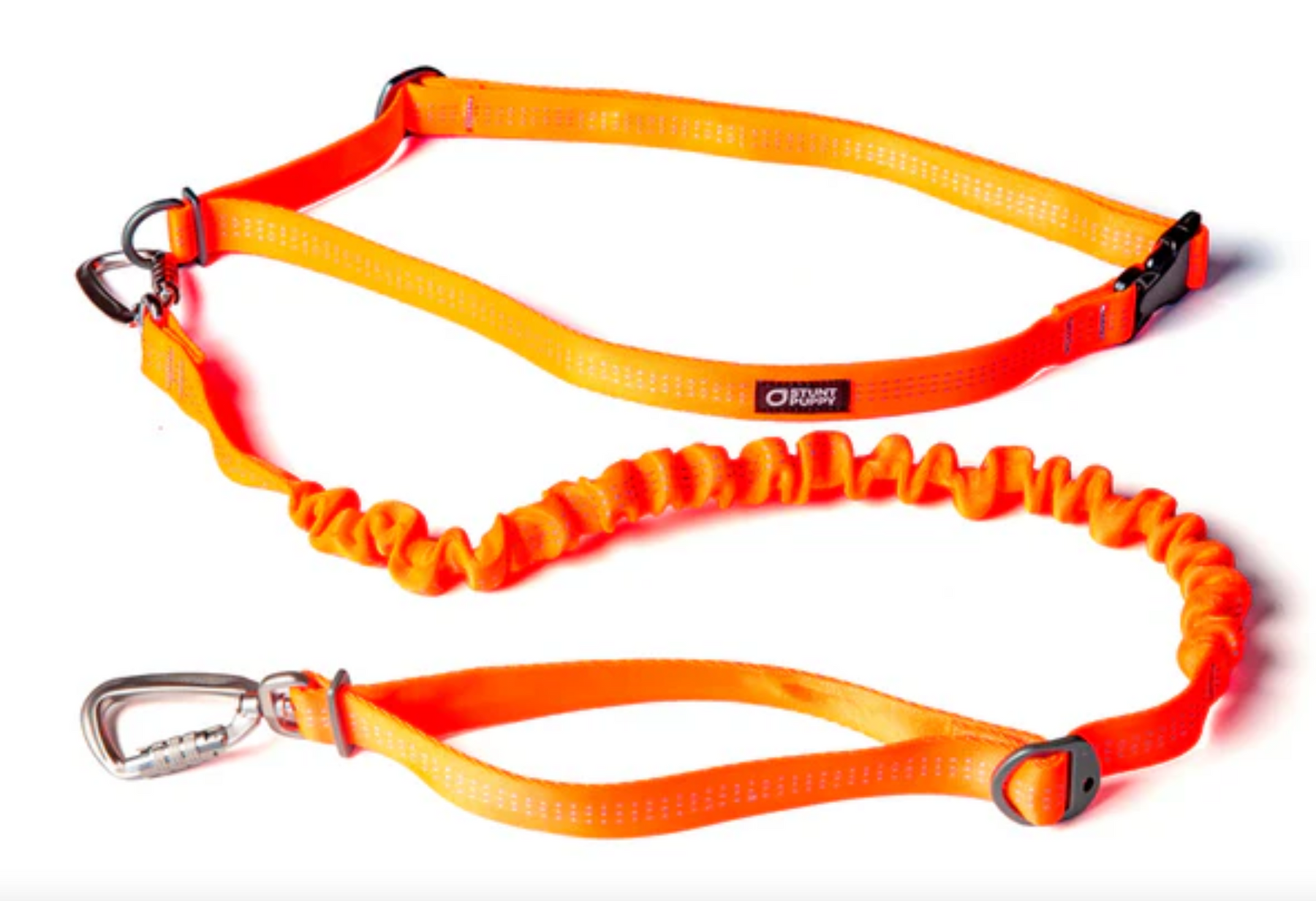 Built for the road, the track, the trail or the sidewalk the super-lightweight Stunt Runner™ dog lead keeps you and your dog in sync and hands free.
