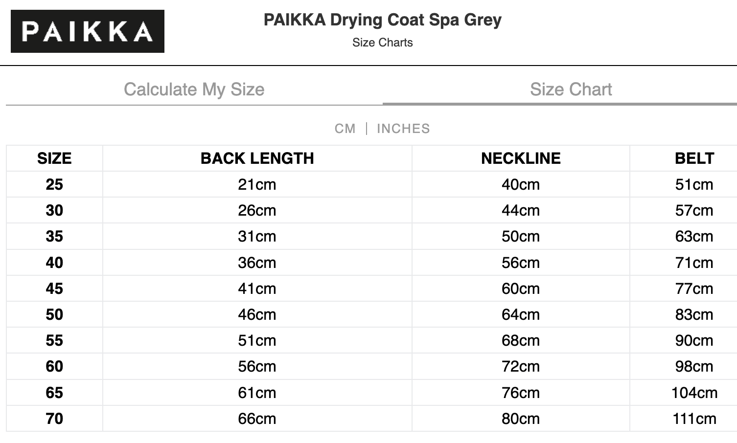 The PAIKKA Drying Coat Spa tends to run big, so we suggest ordering one size down.