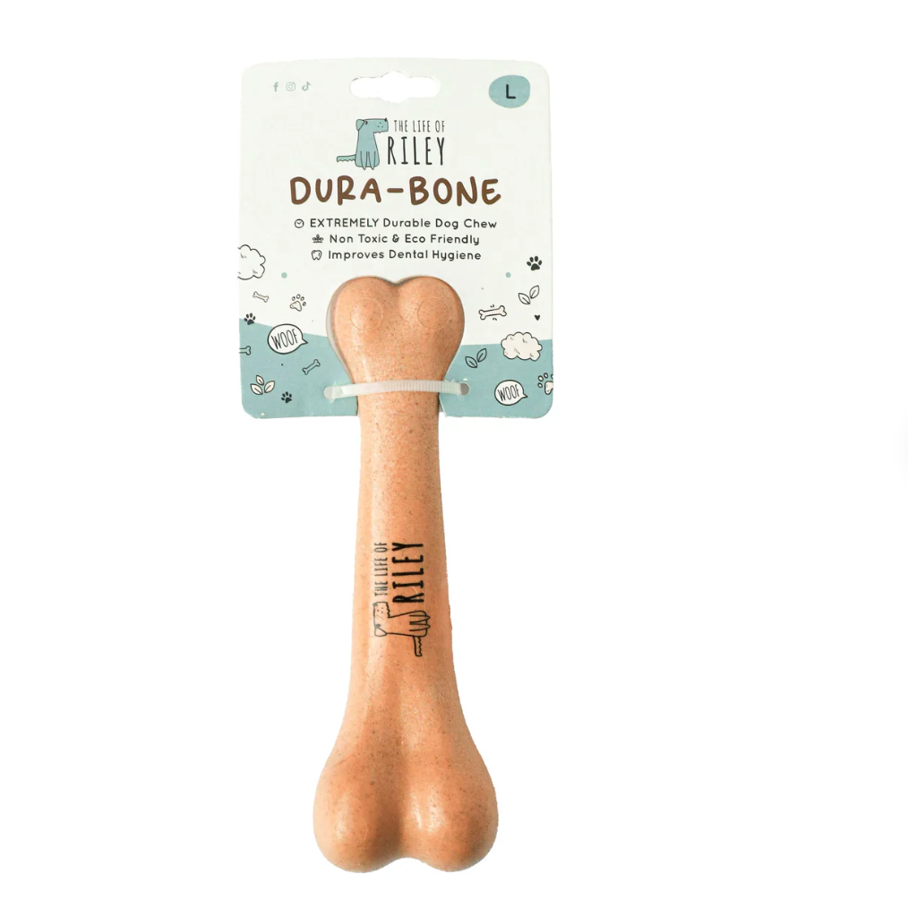 Made from natural wood shavings combined with eco-friendly, food-grade polypropylene, the Dura-Bone is extremely tough yet safe. It’s non-toxic, non-allergenic and designed to slowly grind down as your dog chews, helping clean teeth and stimulate gums along the way.